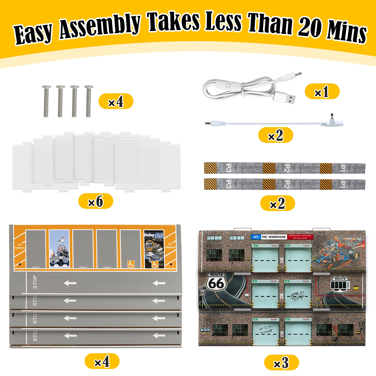 Saichotoy 1/64 Cars Parking Garage with Lights, Hot Wheels Storage and Display Case