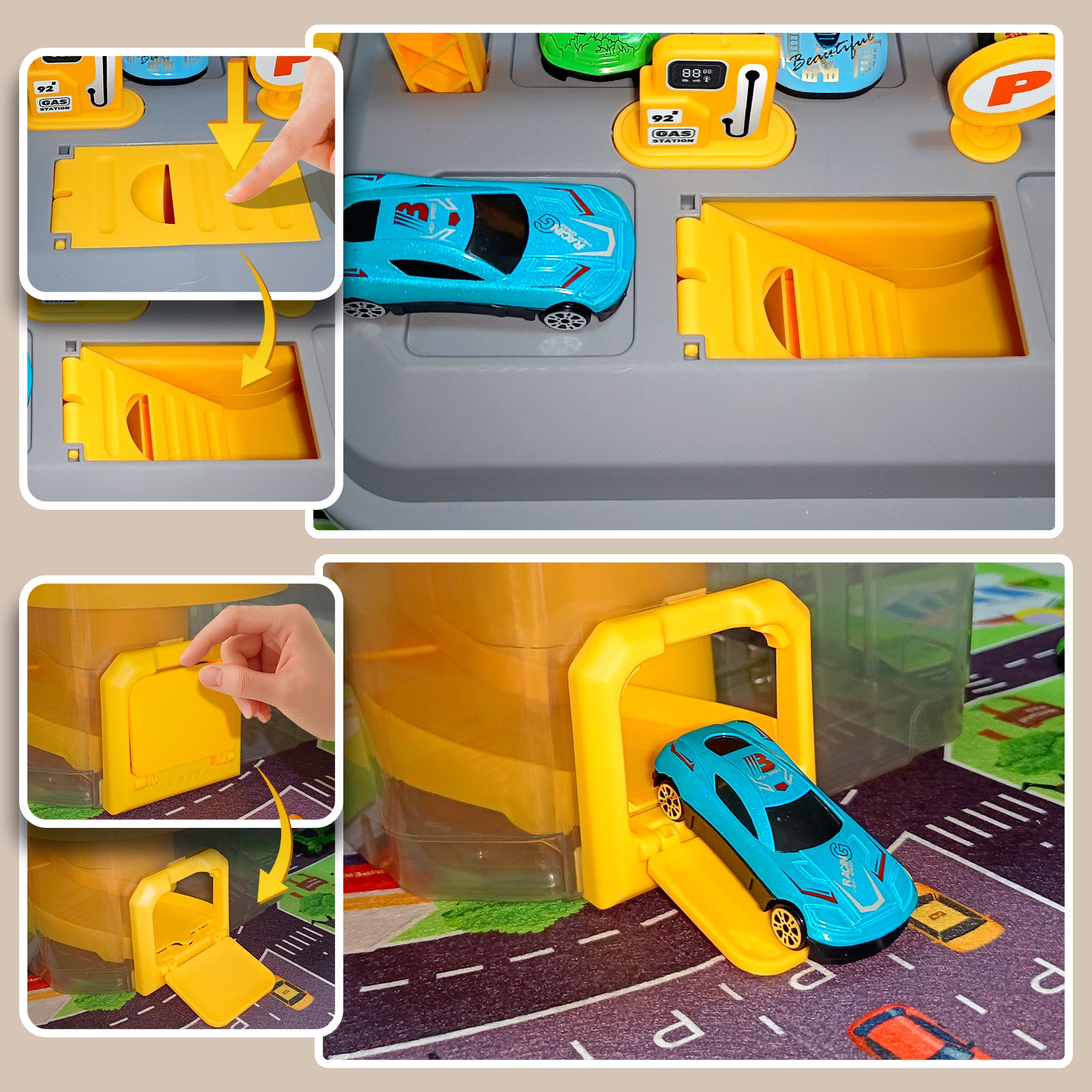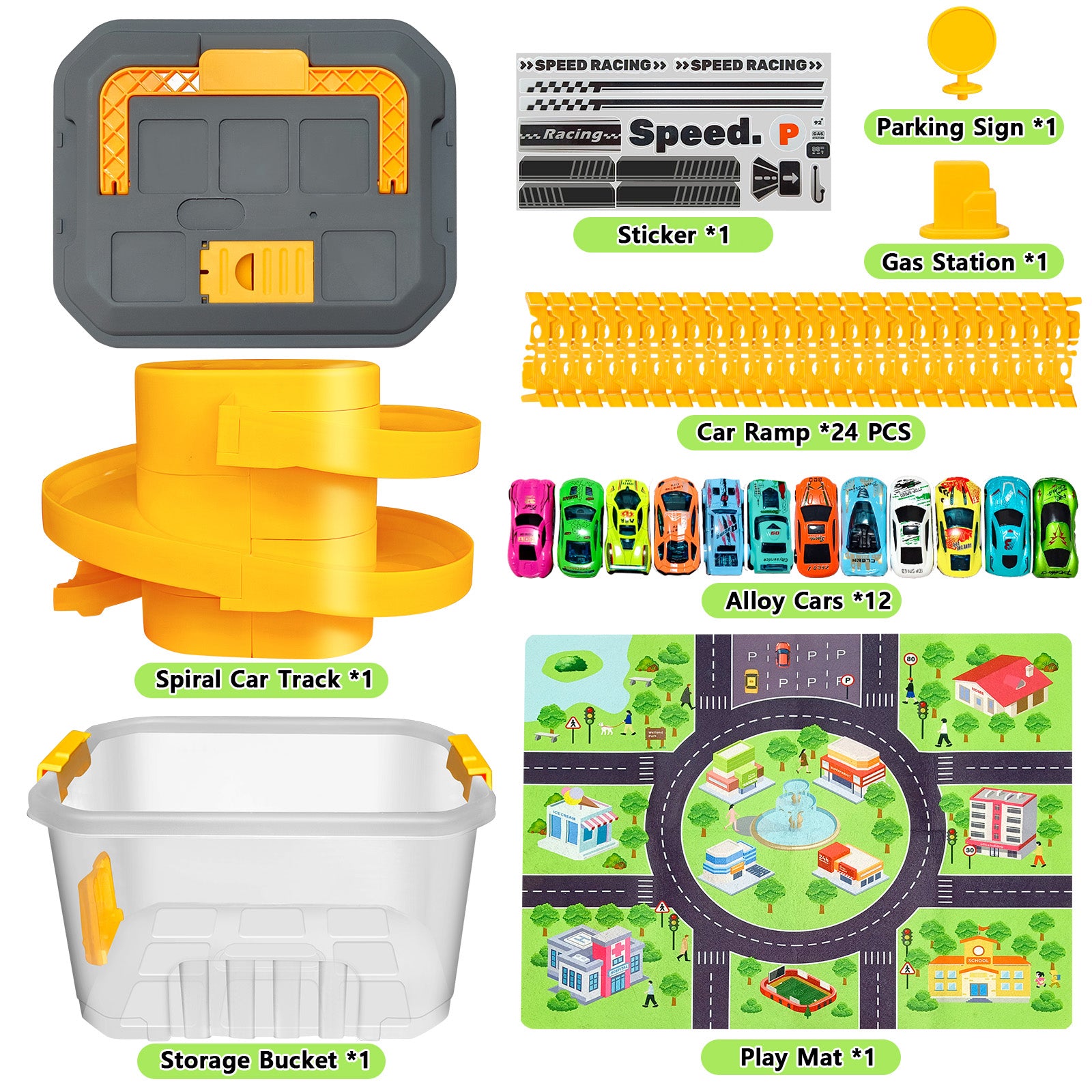 Toy Car Track Storage Set - Toddler Toys for Ages 2-5 Including 12 Diecast Cars Compatible with Hot Wheels, Plat Mat, Race Tracks, Car Ramp, Kids Birthyday Gift for 2 3 4 5 Year Old Boys